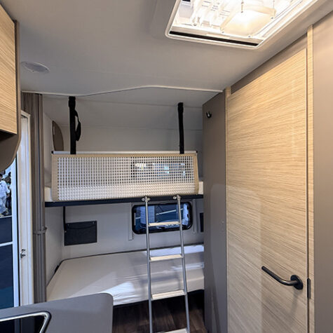De Next 381 is een volwaardige gezinscaravan en biedt slaapruimte voor vier personen. Achterin bevindt zich een praktisch stapelbed dat opklapbaar is, zodat de ruimte overdag flexibel te gebruiken blijft. De comfortabele zitgroep kan eenvoudig worden omgebouwd tot een tweepersoonsbed.