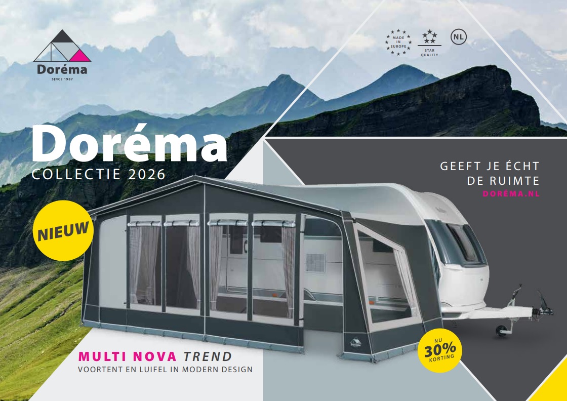 Dorema is al meer dan 30 jaar de complete specialist in caravan-voortenten en luifels. Dorema ontwerpt en maakt topkwaliteit voortenten voor alle gangbare modellen caravans en levert daarbij een compleet programma accessoires en onderdelen. Alle voortenten zijn gemaakt van de beste kwaliteit materialen, met zorg verwerkt tot een duurzaam gebruiksvriendelijk product en, na controle door de kwaliteitsmedewerkers van Dorema, voorzien van het Dorema KWALITEITS-CERTIFICAAT.